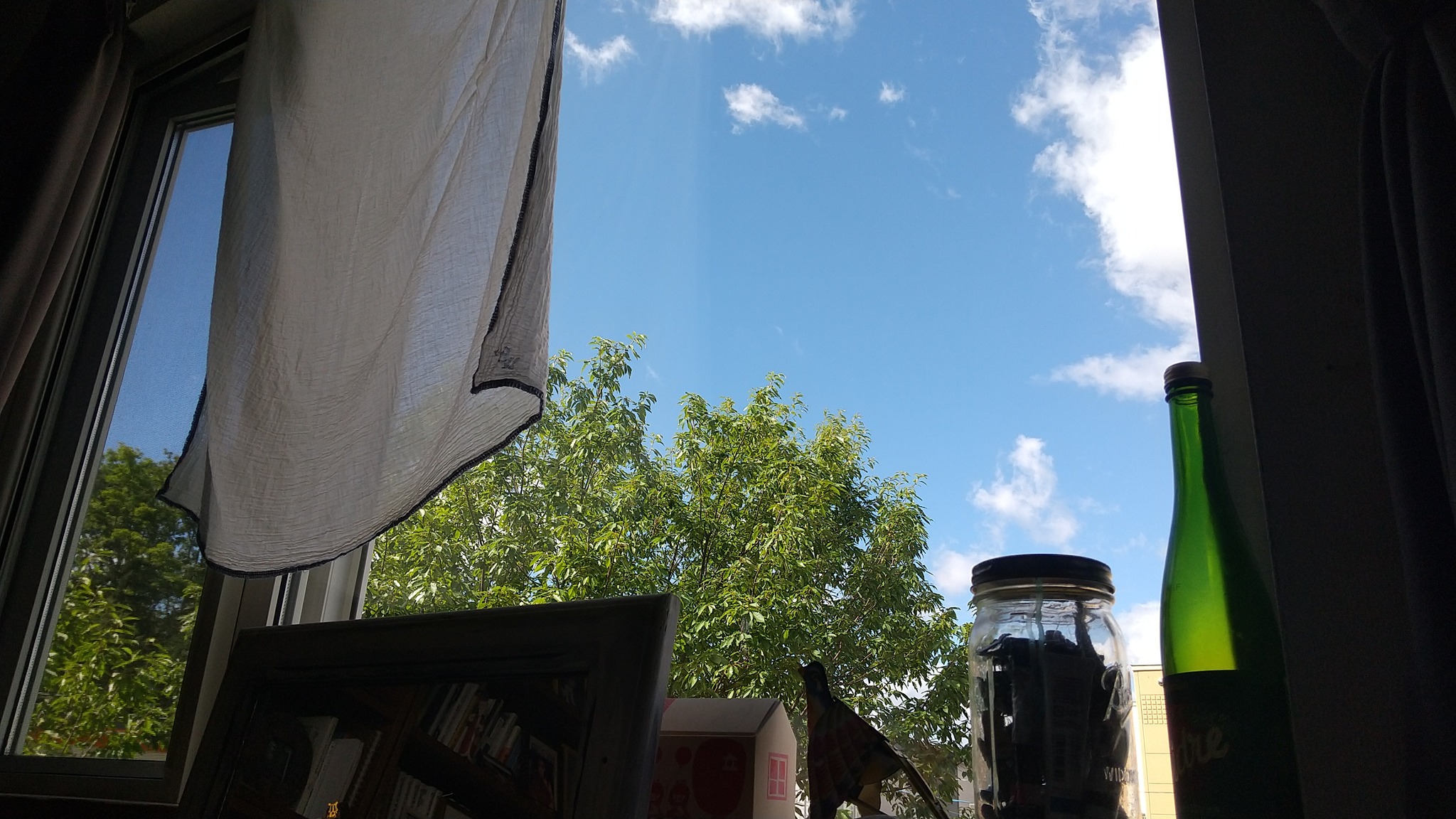 ケーボーの部屋から見える空。この窓の下で本を読んだり何かしら書いたりするのが好きだけど意外に時間がありません。